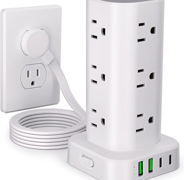 A surge protector is a power strip that not only lets you plug in multiple devices at once but also protects your electronics from sudden power surges, the kind that can happen in older buildings, such as dorms. Many surge protectors also come with built-in USB ports, so you can charge your phone, tablet, or AirPods without needing a bulky adapter. It's like a power hub that keeps everything running and safe. In college, outlets are precious real estate. Most dorm rooms provide only two plugs for all your belongings. Between your laptop, desk lamp, phone, fan, coffee maker, and beauty tools, you'll run out of space quickly. That's why this compact but powerful accessory is non-negotiable. It instantly expands one outlet into a charging station for all your essentials, eliminating the mess of cords and the hassle of fighting over plug access with your roommate. More importantly, it provides your devices with an added layer of protection. Dorm wiring can be unreliable, and a single power surge could damage your expensive electronics. A surge protector helps prevent that nightmare scenario because the only thing more stressful than finals is replacing a fried laptop the week of midterms.